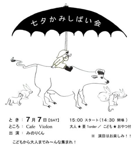 七夕の日、ヴィオロンに紙芝居がやってきます。 演じ手は みのり さん (やさしい笑顔が好印象なお兄さんです)。 最近では街中で観る事もなくなった紙芝居。 どうやら日本独自の文化らしい。 是非、こども達に体験させたいですね。 それに、大人もなんだかノ…